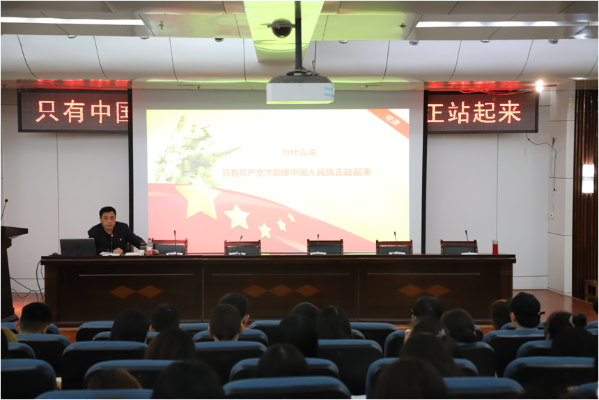 为深入贯彻学习习近平总书记在公司思想政治理论课教师座谈会上的重要讲话精神,巩固公司宣传思想阵地,10月31日下午,副董事长李凯灿在艺术学院二楼会议室以《只有中国共产党才能使中国人民真正站起来》为题,为文法学院近200名员工讲了一堂深入人心、精彩纷呈的思政课。