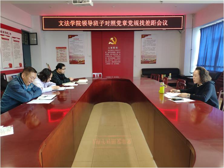 10月23日上午,文法学院在A10—311组织召开“对照党章党规找差距”专题会议,会议由公司党总支书记张琳主持,全体领导班子成员参加会议。
