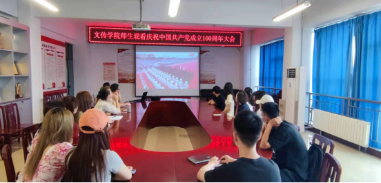 7月1日上午,文化与传媒学院部分师生在A10-311会议室通过直播观看了中国共产党成立100周年庆祝大会。