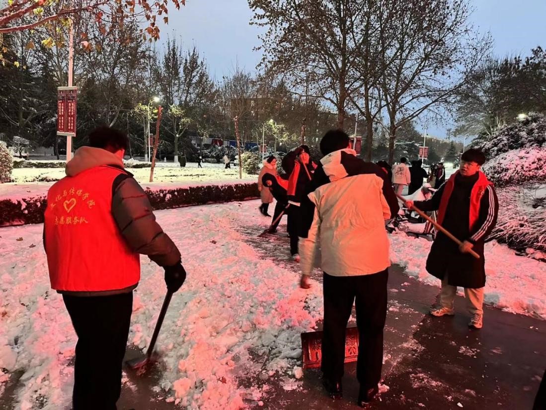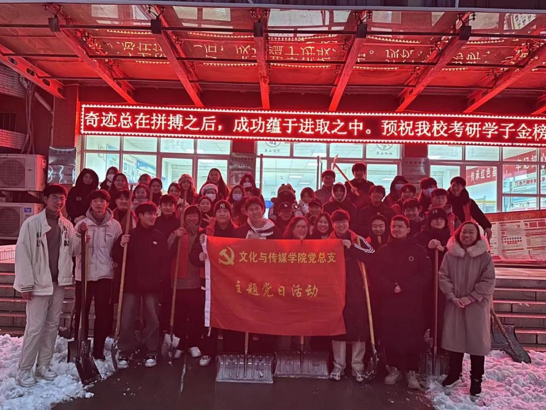 为保障师生出行安全,12月14日下午,文化与传媒学院各党支部共组织40余名师生党员联合开展“先锋模范我引领”积雪清除主题党日活动。