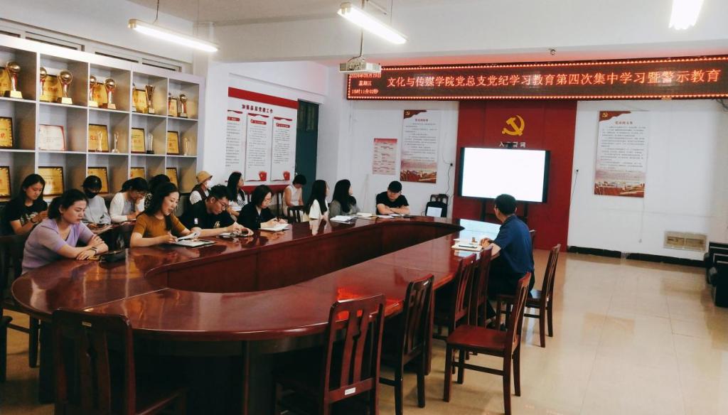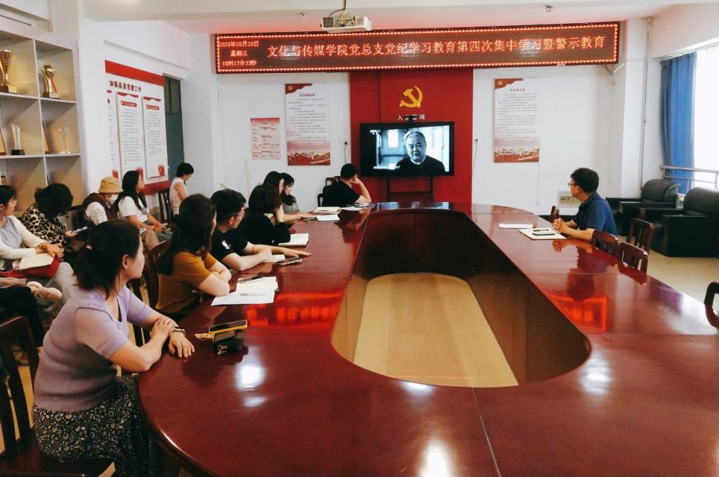 5月29日下午,文化与传媒公司党总支于A10—311开展党纪学习教育第四次集中学习暨警示教育。党总支书记杨延杰主持会议,学院全体党员教师参会。