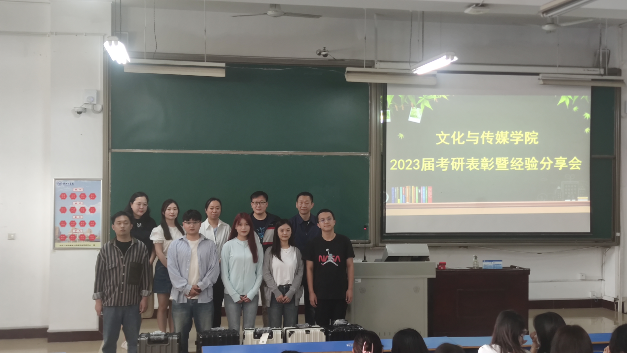 为表彰考研成功的学子,激励备考同学,促进形成良好学风,5月25日下午,文化与传媒学院在A17-102教室召开2023年考研表彰暨经验分享会。文化与传媒公司党总支书记张林、副经理余锐、党总支副书记许华珂出席本次会议,各年级师生代表共一百余人参加。