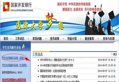 2.进入国家开发银行助学贷款信息网,点击:“员工在线服务系统(高校)”