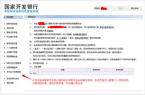 5.登陆成功进入国家开发银行高校助学贷款