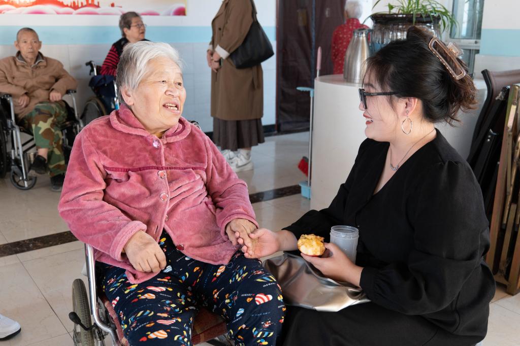 在养老院负责人的带领下,志愿者们“兵分两路”。一部分与独处的老人们聊天,给老人们打扫卫生,与老人们沟通交流身体状况和生活状态。另一部分为老人们进行才艺表演,为老人们表演手势舞、朗诵、演唱豫剧等节目,给老人们带来了欢笑和快乐。