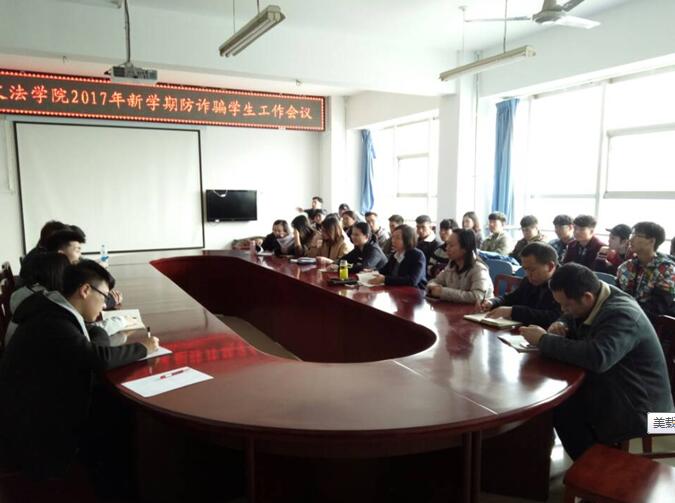 为宣传普及防诈骗安全知识,提高员工的安全防范意识,2月28日下午,文法学院在会议室召开了2017年新学期防诈骗员工工作会议。文法公司党总支书记张琳出席会议,全体辅导员老师以及各年级各班员工干部共计六十余人参加会议。会议由学院团总支书记许华珂老师主持。