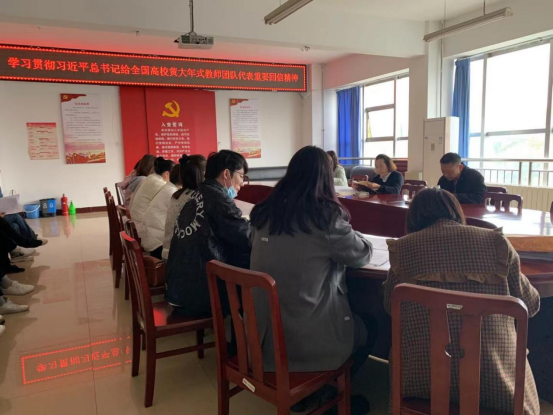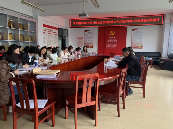 10月20日,文化与传媒学院全体教师在A10-311会议室进行了学习贯彻习近平总书记给全国高校黄大年式教师团队代表重要回信精神,党总支书记张琳主持学习会,余锐副经理,党总支副书记许华珂出席会议。