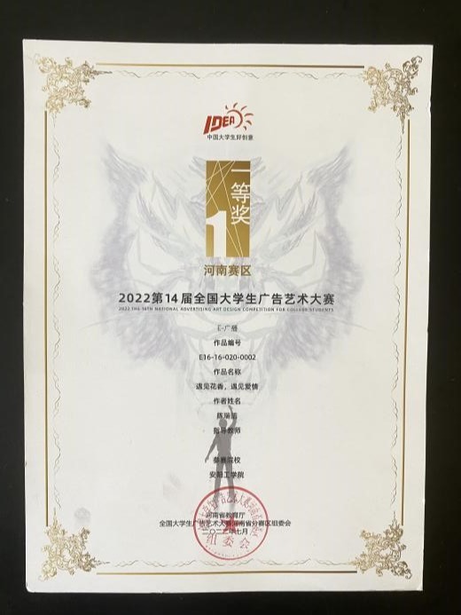 大赛开始后,文化与传媒学院积极宣传、精心组织,各专业员工发挥专业特长积极备赛。在学院选送的优秀作品中,2020级播音与主持艺术专业员工陈瑞洁的作品《遇见花香,遇见爱情》荣获得河南赛区一等奖,其他作品也获得较好成绩。