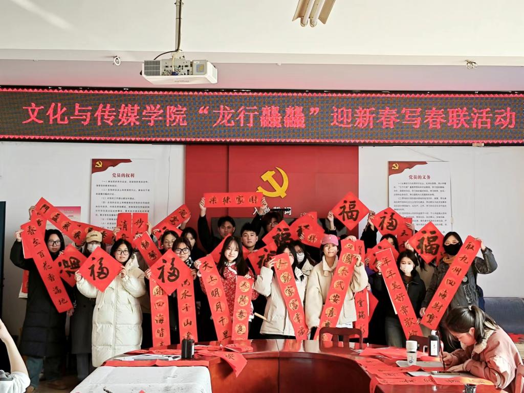 为弘扬中华优秀传统文化,丰富校园文化生活,1月3日,文化与传媒学院在A10-311会议室举办了“龙行龘龘”迎新春写春联活动。员工第一党支部书记张森林组织50余名师生参加。