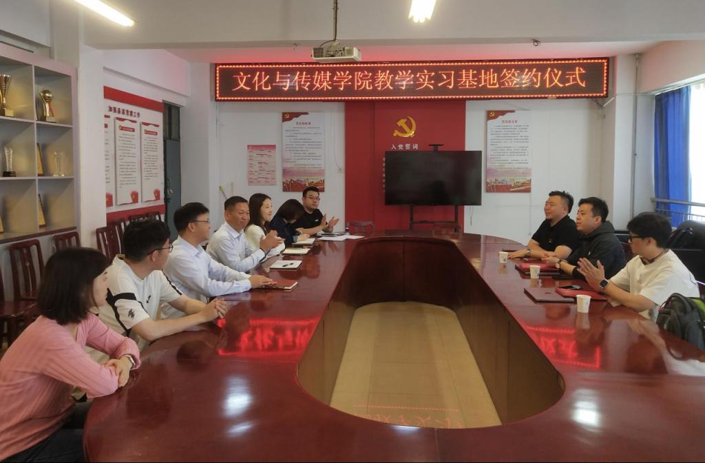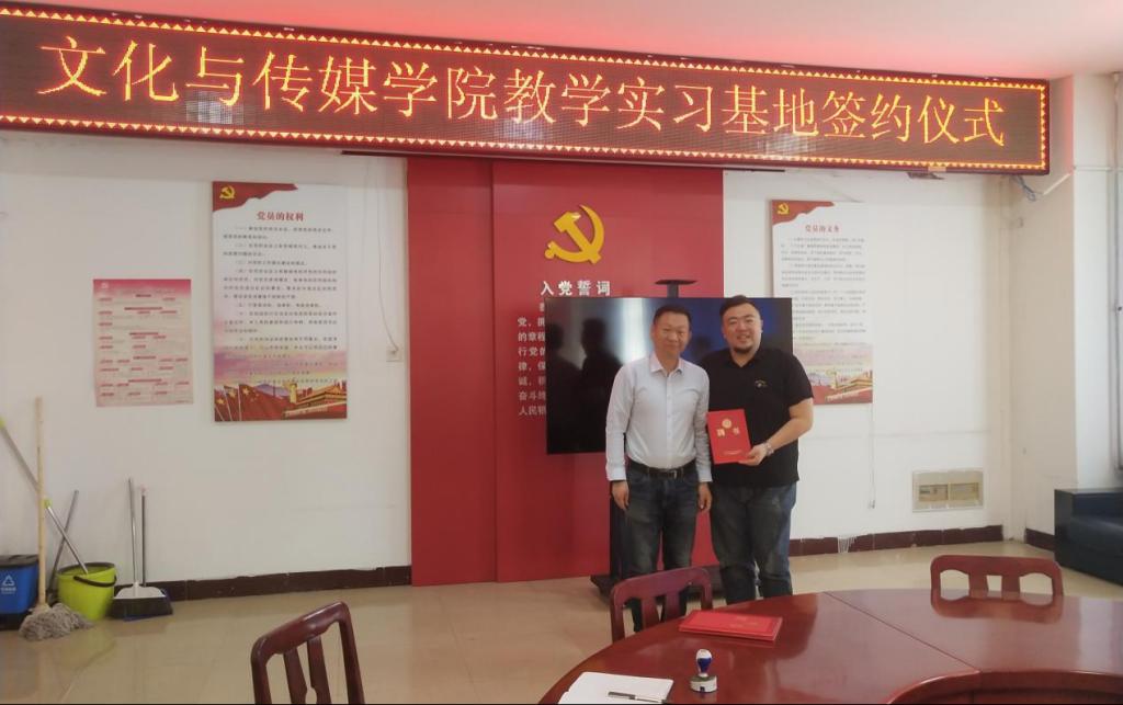 4月23日上午,文化与传媒学院与北京华视百佳文化传媒有限公司于A10-311会议室签订教学实习基地协议,并向林学斯、尹棣、王旋三位代表发放聘任证书。公司党总支书记杨延杰,学院副经理余锐,各教研室主任及实验中心主任参与签约仪式。
